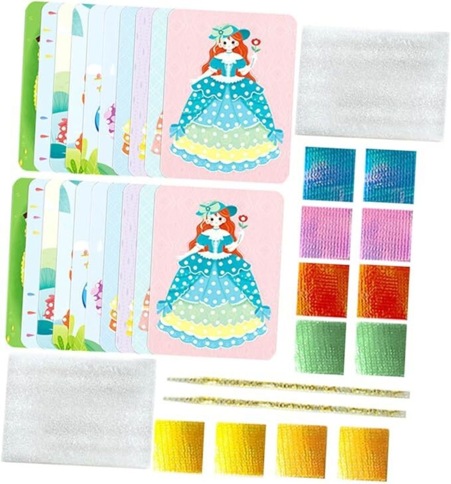 Komplet vsebuje: 10 kosov likovnih platnenih plošč, 1 kos umetniškega orodja, 1 kos biserne bombažne pene, 600 tkanin v živahnih barvah.