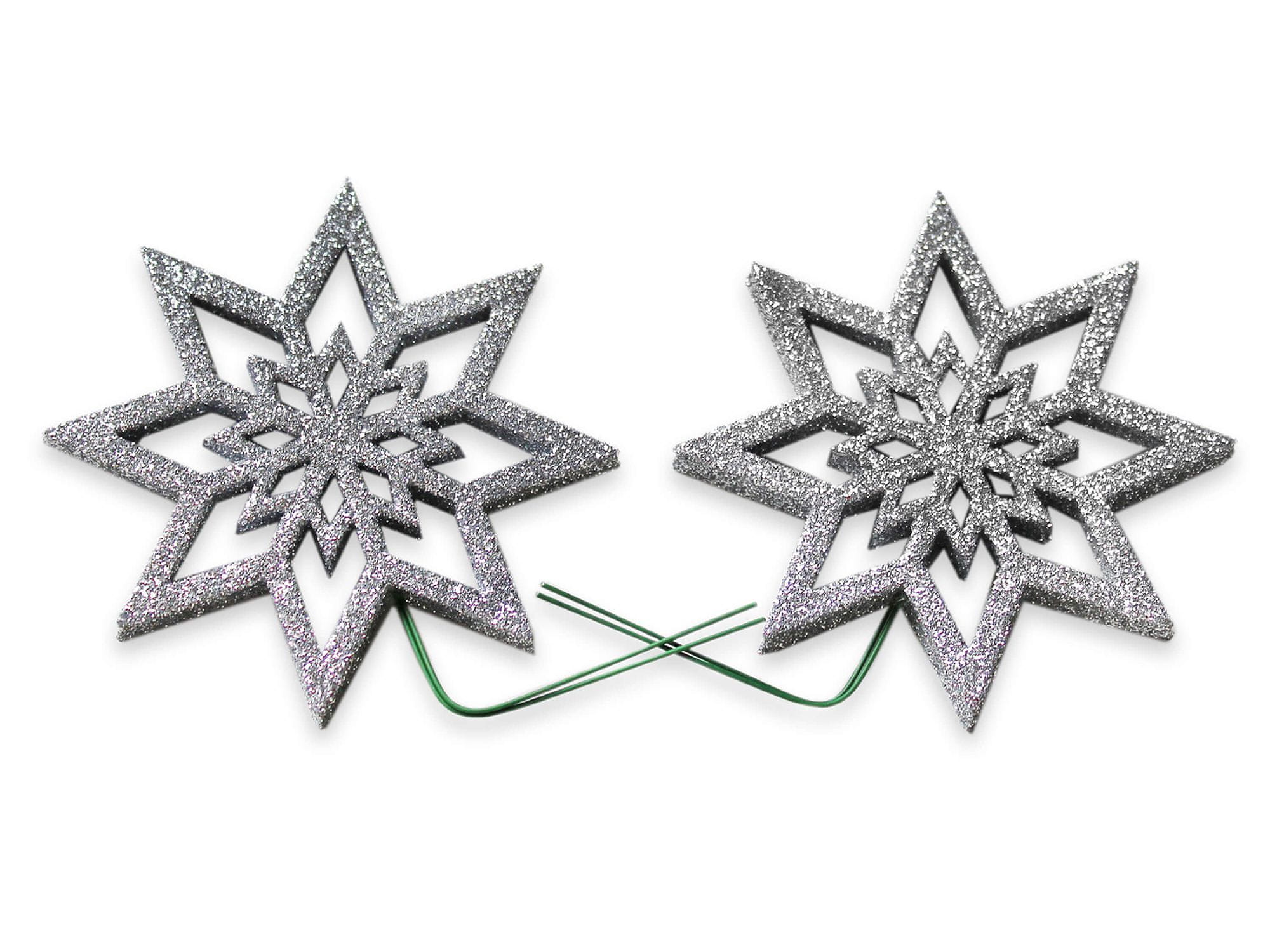 LAALU.cz Komplet 2 okraskov: srebrna zvezda na žici 8 cm
