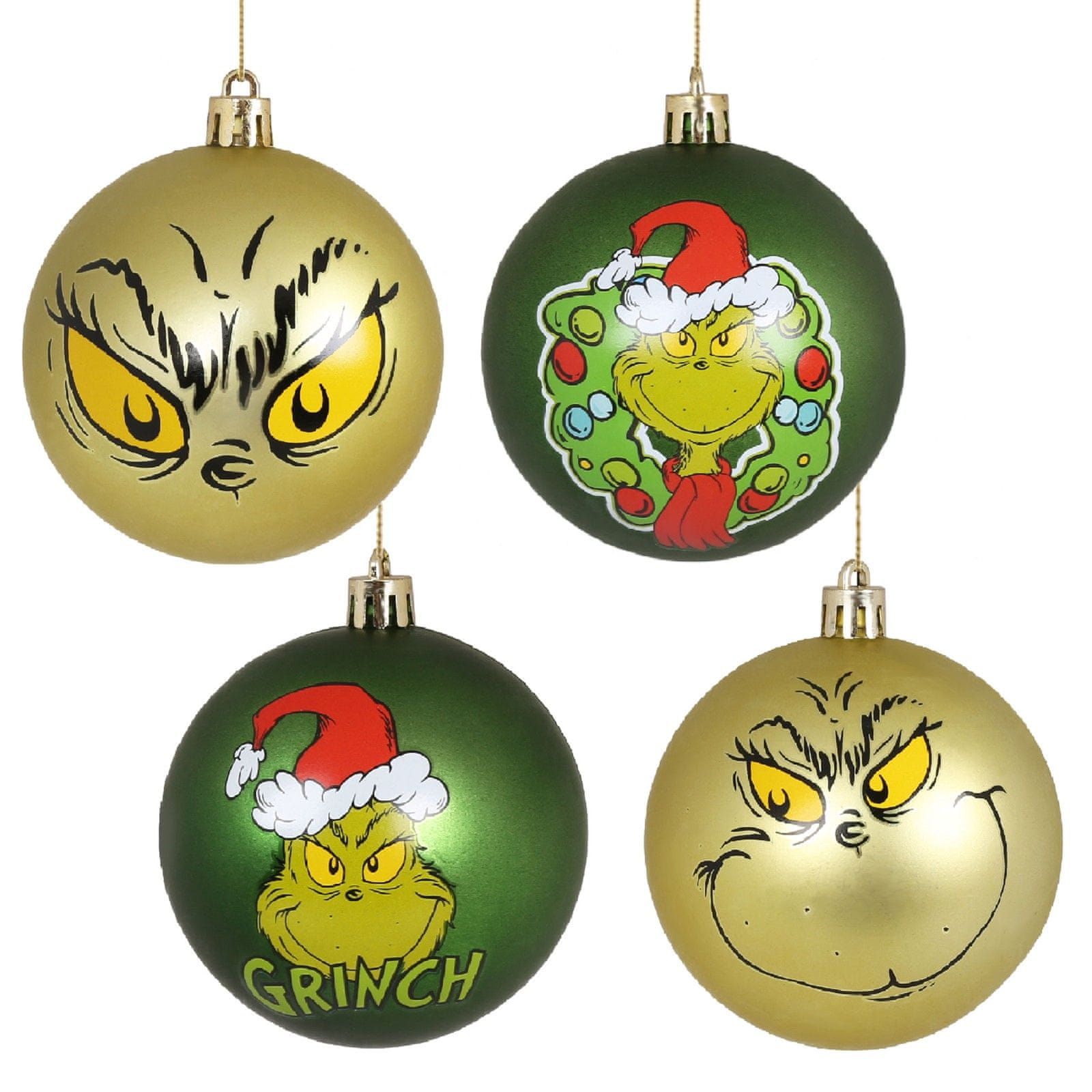 sarcia.eu Grinch SET božičnih okraskov za drevesce, NELOMLJIVI, PLASTIČNI božični okraski 8 cm, SET 4 kosov