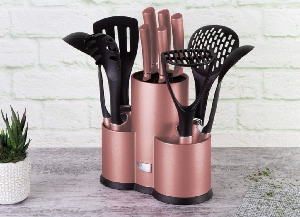 Berlingerhaus Komplet nožev in kuhinjskih pripomočkov v stojalu 12 kosov I-Rose Edition BH-6252