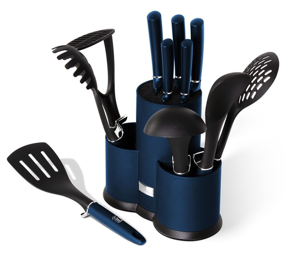 Berlingerhaus Komplet nožev in kuhinjskih pripomočkov v stojalu 12 kosov Aquamarine Metallic Line BH-6249