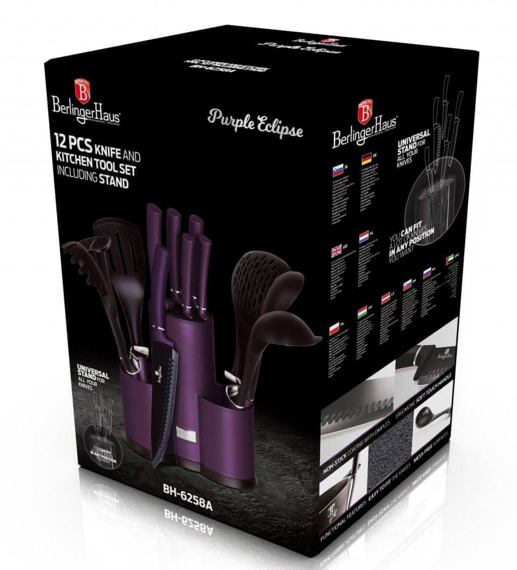 Berlingerhaus Komplet nožev in kuhinjskih pripomočkov v stojalu 12 kosov Purple Metallic Line BH-6258