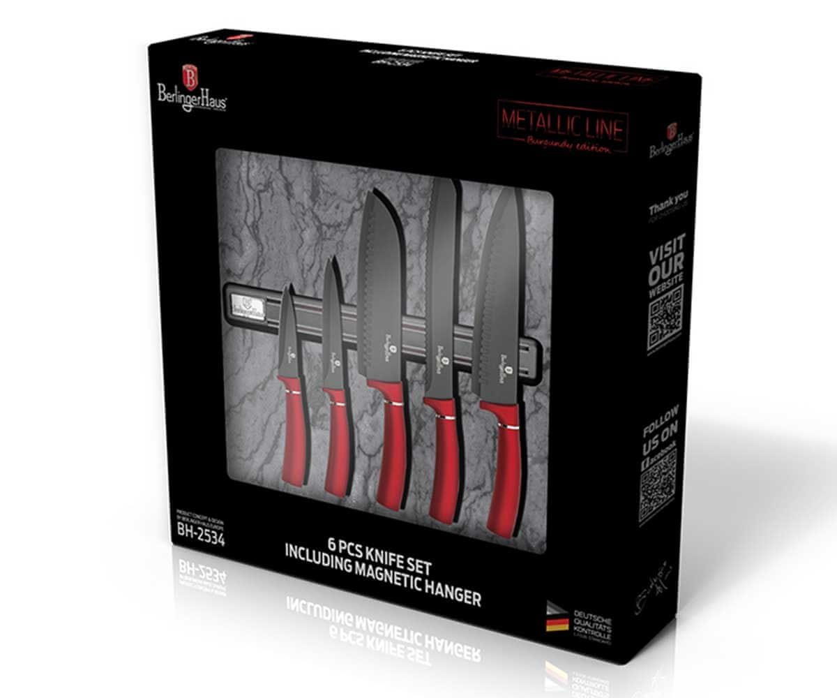 Komplet 5 nožev z magnetnim trakom podjetja BERLINGER HAUS iz serije Burgundy Metallic Line.