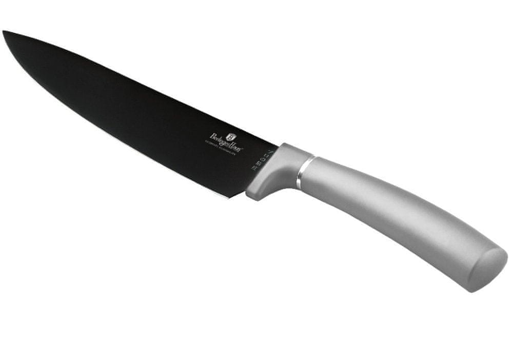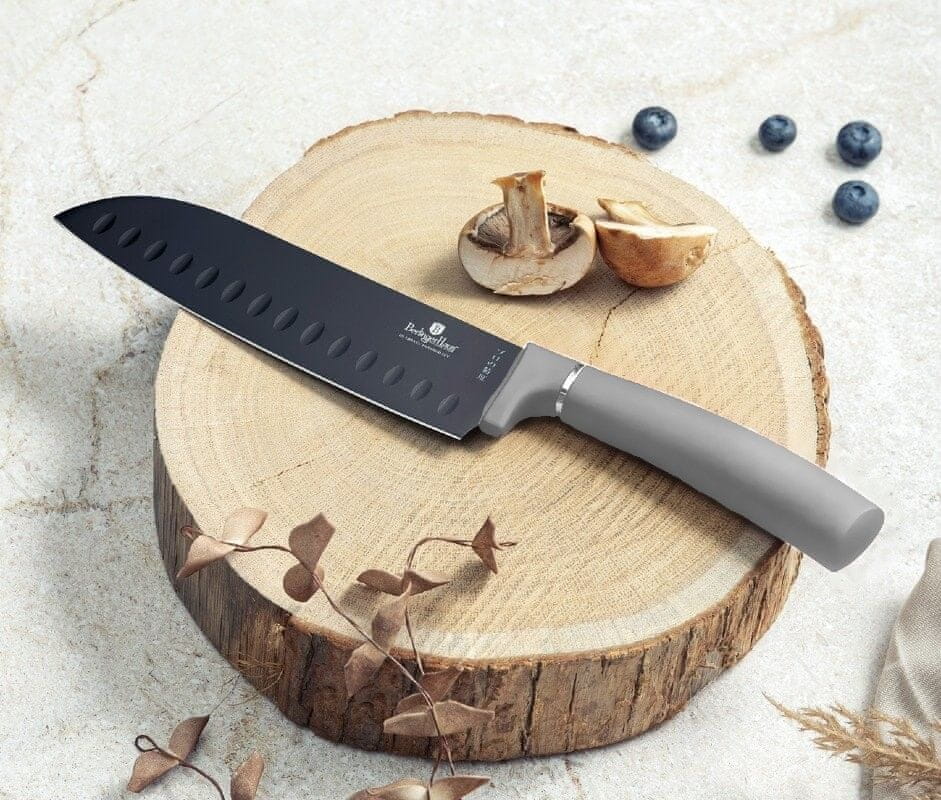 Komplet Berlingerhaus Aspen Collection sestavlja 6 nožev v magnetni darilni škatli. Ostra rezila so prevlečena s sivo nelepljivo površino z antibakterijsko obdelavo. Narezana hrana se nanje ne prilepi. Zato jih je enostavno očistiti.