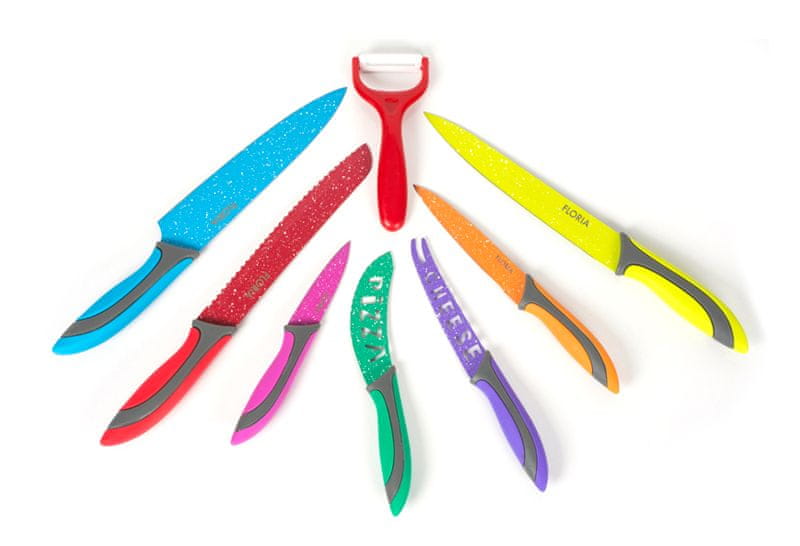 Set Floria ZLN1143 vsebuje sedem različnih nožev in keramični lupilec zelenjave. Narejen je iz nerjavečega jekla, zato je izjemno trpežen in ni podvržen koroziji. S prevleko proti prijemanju. Celoten opis