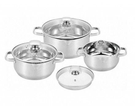 • Material: visokokakovostno sendvič dno za hitro in varčno kuhanje – ročaji iz nerjavečega jekla se ne segrevajo, vedno ostanejo hladni – toplotno odporen pokrov z ročajem iz nerjavečega jeklabr /> – integrirane luknje za cedenje v pokrovih in izliv na vsakem