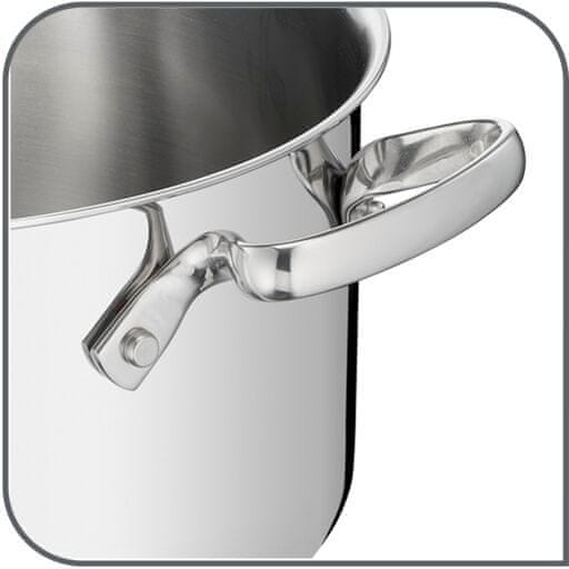Najboljši komplet loncev. Pokrovke so praktične za odlivanje tekočine, so malo bolj okorne za skladiščenje, vendar gredo tudi v pomivalca (nataknemo jih skozi luknjice za odlivanje tekočine). Lonci imajo debelo dno in se hrana lepo peče in kuha. Boljši so nam kot gorenjevi in wmfjevi, kjer para ne uhaja dovolj. Ročaji loncev in pokrovk se pri vseh omenjenih nekoliko segrejejo.