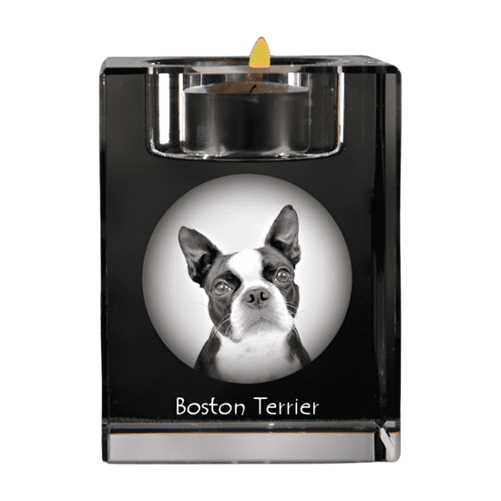 Artdog Bostonski terier, Bostonski bulterier - svečnik s fotografijo psa, kristalno stojalo za čajne svečke, personalizirano darilo Art-Dog
