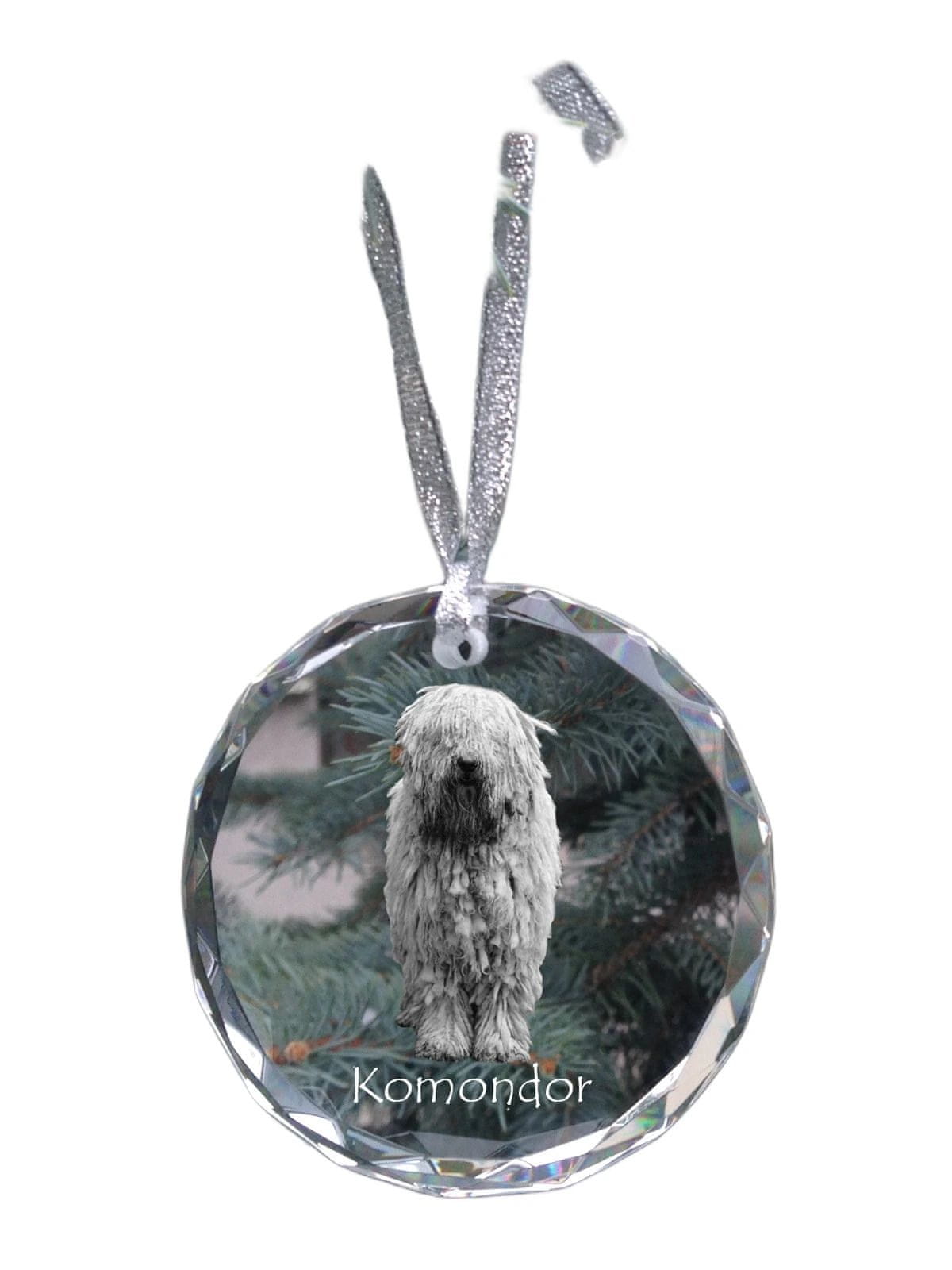 Artdog Komondor - kristalna kroglica s fotografijo, fotografije psa v kristalu, personaliziran obesek za božično drevo Art-Dog