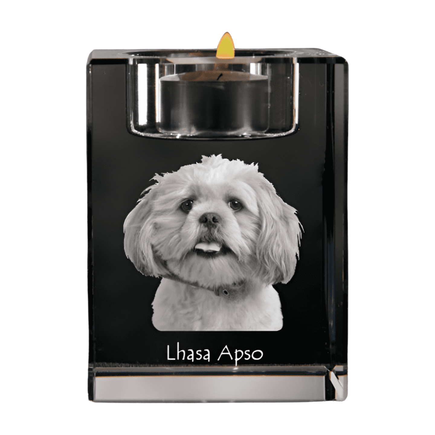 Artdog Lhasa Apso - svečnik s fotografijo psa, kristalno stojalo za čajne svečke, personalizirano darilo Art-Dog