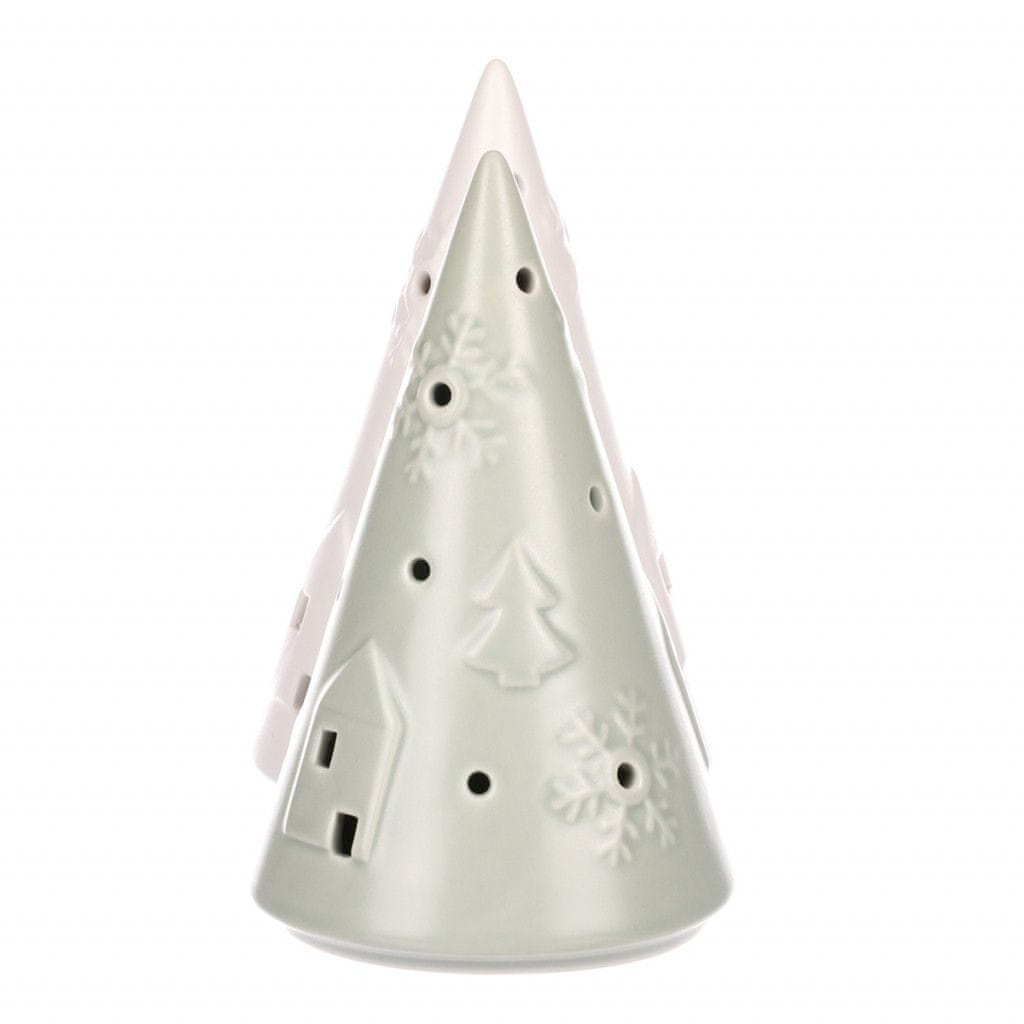 Porcelanska koža z osvetlitvijo LED. Narejen je v obliki božičnega drevesa.