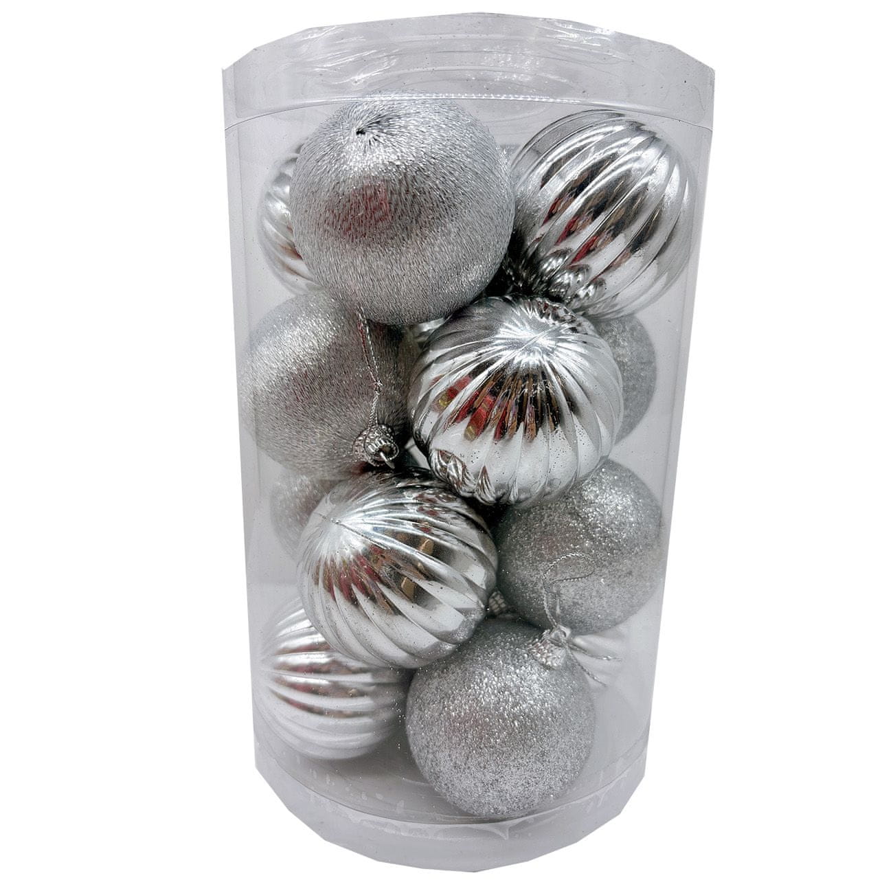 Tip: Začetek in zaključek: Vrsta: božična dekoracija. V kompletu: V kompletu: 16× kroglice. Velikosti: Sklopi: 6 cm. Barve: srebrna. Vzorec: z bleščicami in profiliran. Material: plastika. Celoten opis