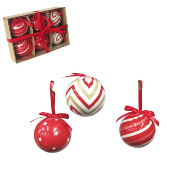 Tip: Začetek in zaključek: Vrsta: božična dekoracija. V kompletu: V kompletu: 6× kroglice. Velikost: 7,5 cm. Barve: rdeča in bela. Vzorec: gladek, svetleč, pegast. Material: plastika. V darilni škatli. Dimenzije: 15×7,5×22,5 cm. Teža: 28 g. Celoten opis