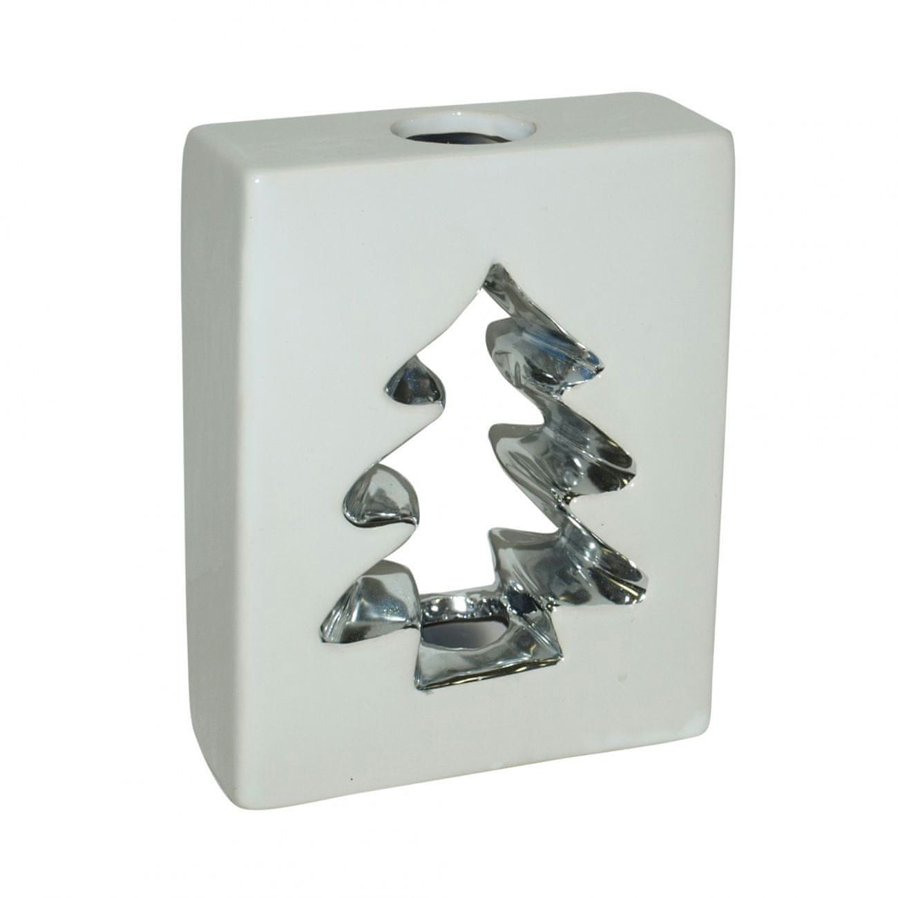 Keramični beli svečnik z okrasnim božičnim drevescem v sredini. Okrasno drevo bo metalo čudovite sence, ko boste vanj postavili prižgano svečo. Keramični beli svečnik se bo odlično podal k skandinavski in moderni notranjosti. Svečenik bo služil kot dekorativni dodatek v dnevni sobi, spalnici ali med sproščujočo kopeljo v kopalnici. Ta svečnik bo tudi čudovit namizni okras v času božiča.