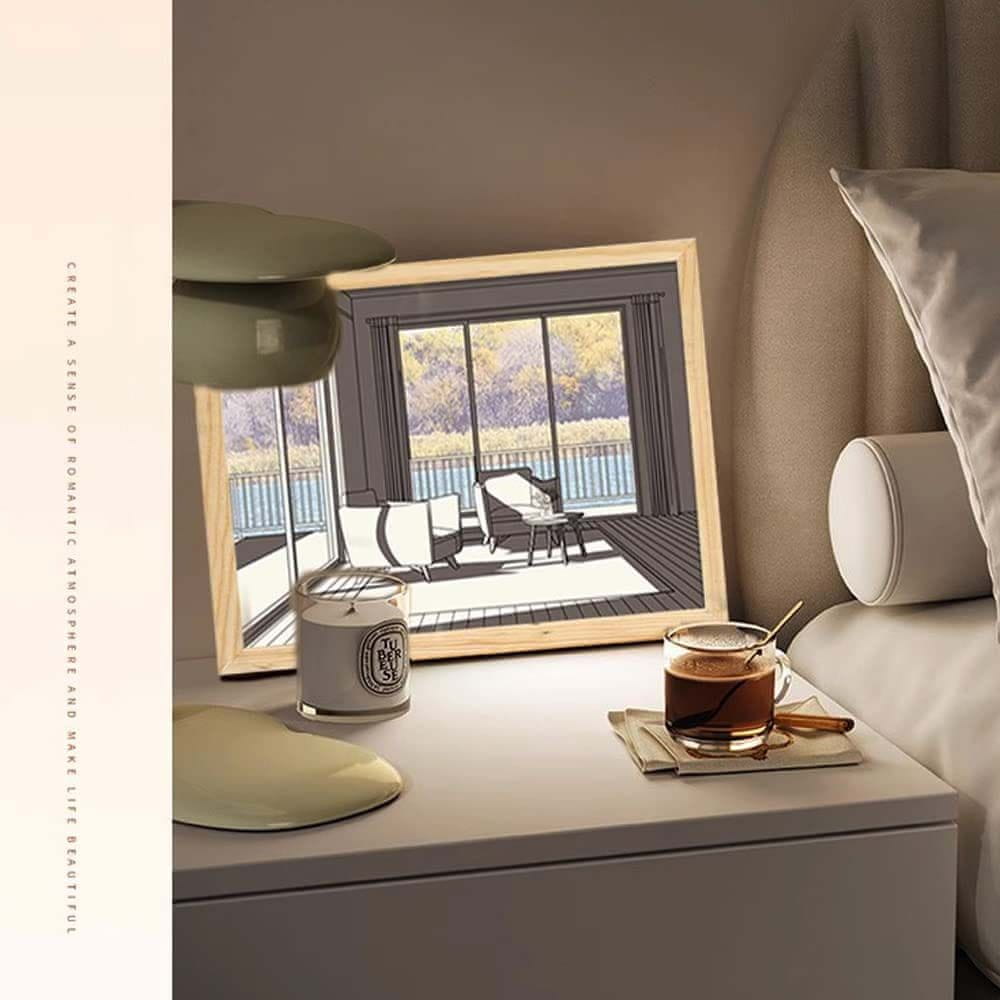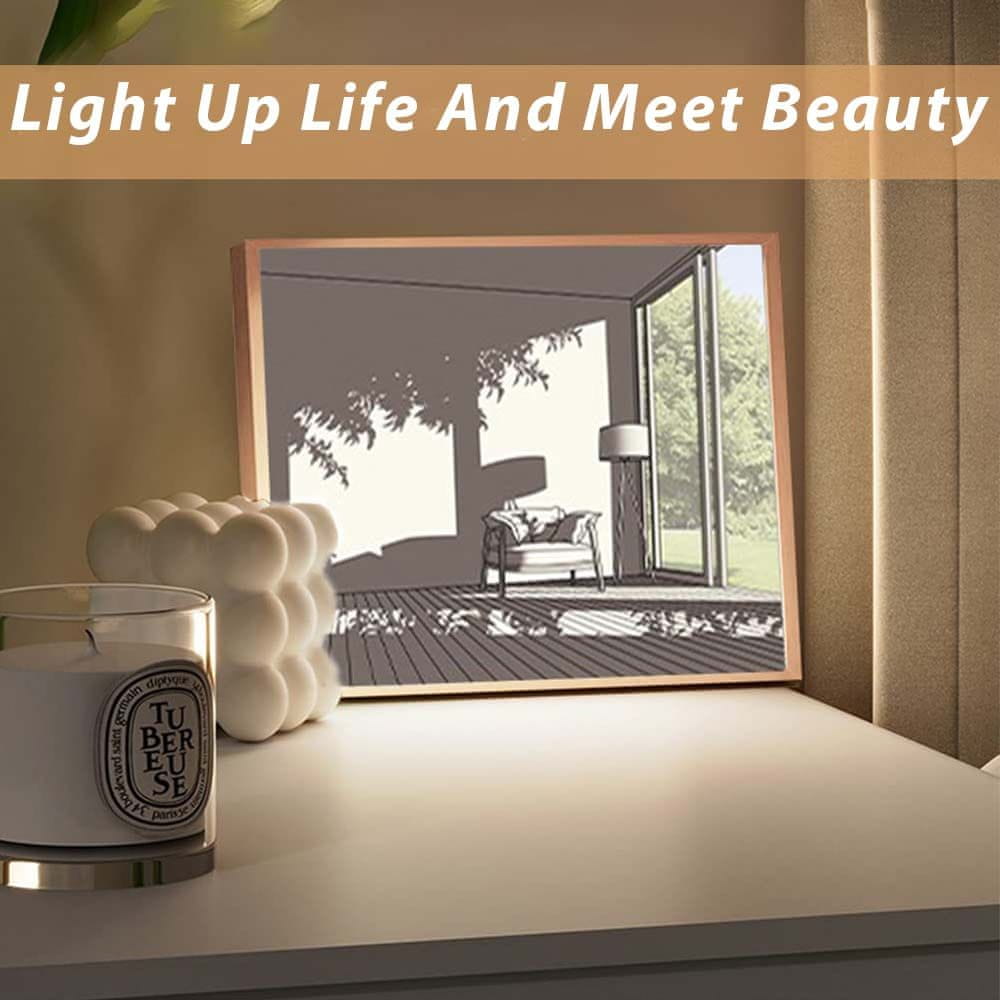 Dollcini USB LED Light Up Wall Art, trije barvno nastavljivi senčniki in okolju prijazen okvir iz masivnega lesa za elegantno dekoracijo doma, karibsko modra