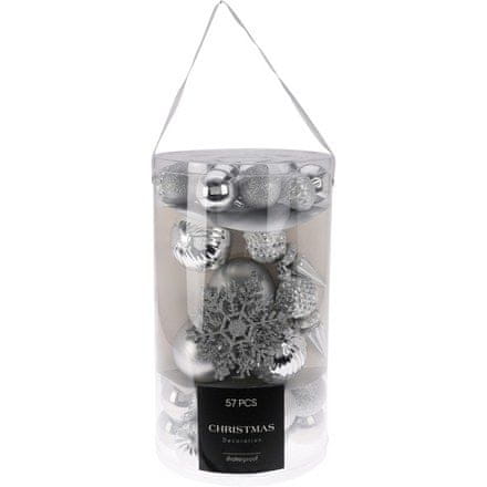 HOMESTYLING Božični okraski KO-CAN304010 set 57 kosov srebrn