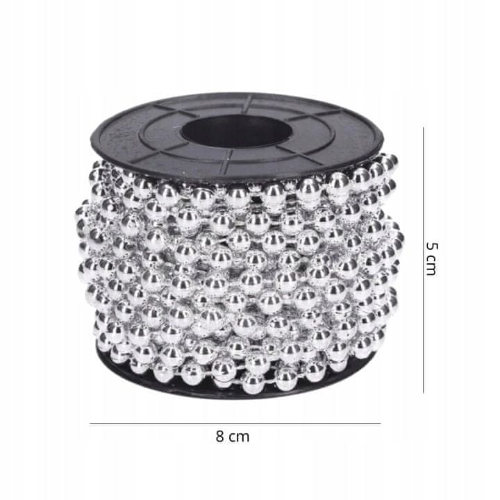 Veriga je sestavljena iz drobnih, sijajnih kroglic, ki lepo odbijajo svetlobo, kar božičnemu drevescu daje luksuzen videz. Njegova dolžina – 5 metrov – omogoča enostavno ovijanje okoli drevesca, kar zagotavlja, da se popolnoma prilega različnim aranžmajem, od klasičnih do bolj ekstravagantnih.