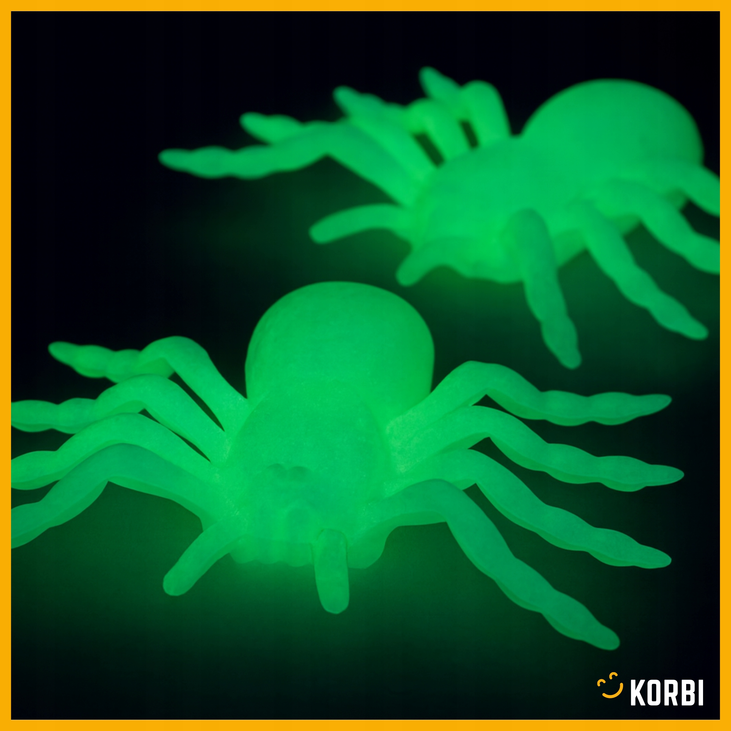 Korbi Fluorescentni pajki – svetijo v temi, okras za noč čarovnic, 2 kosa