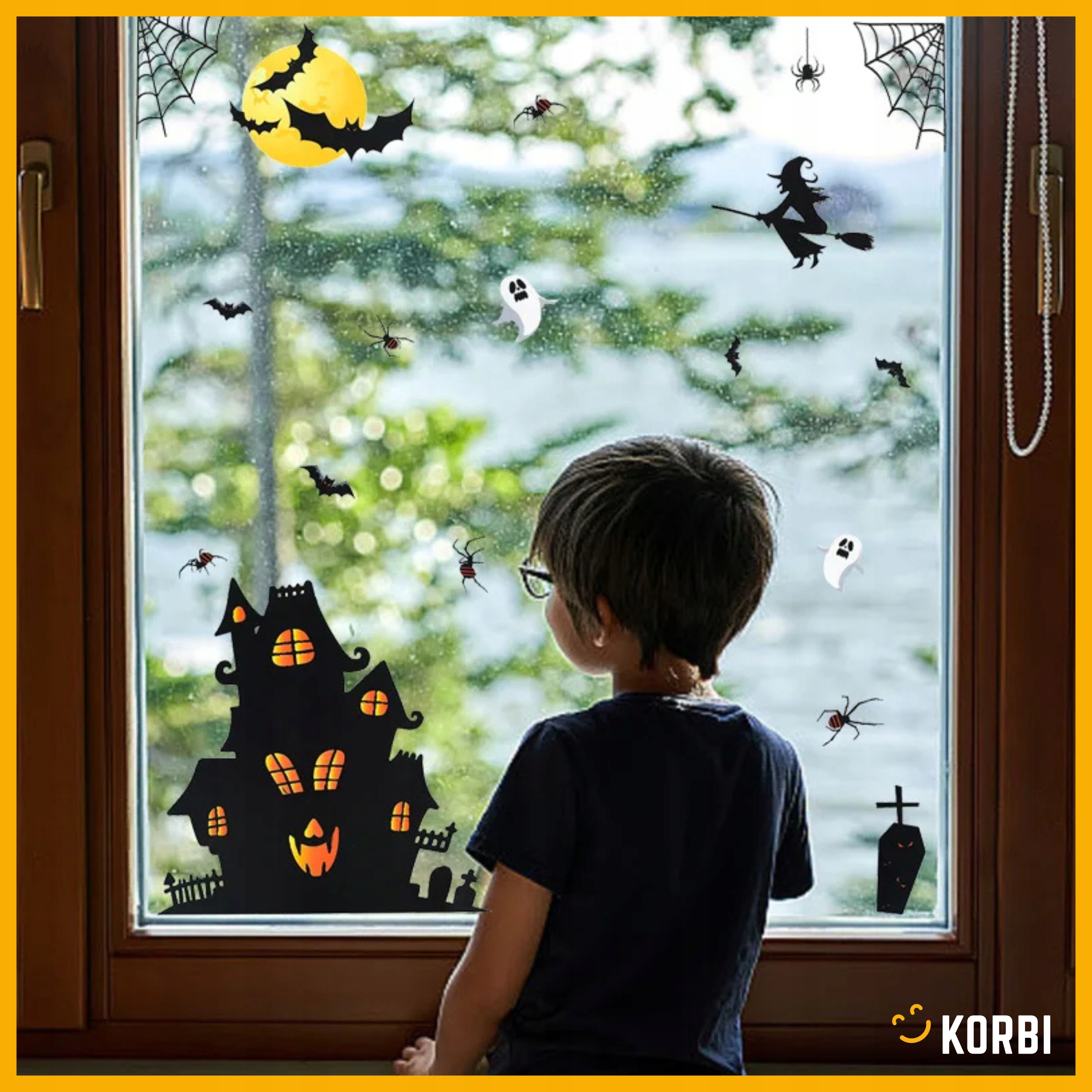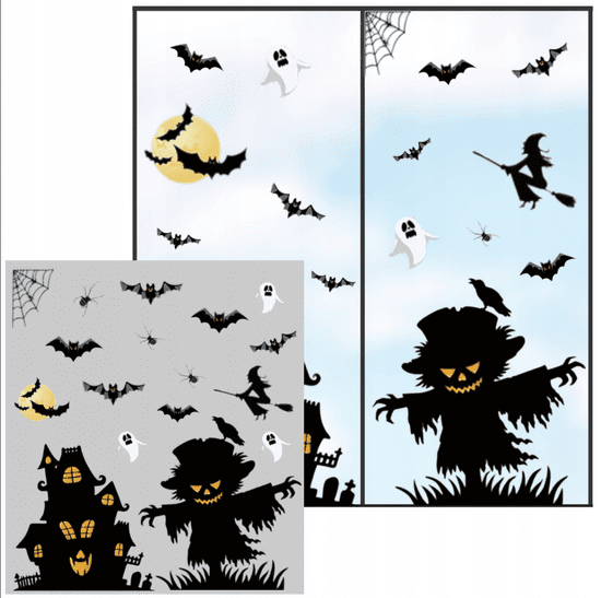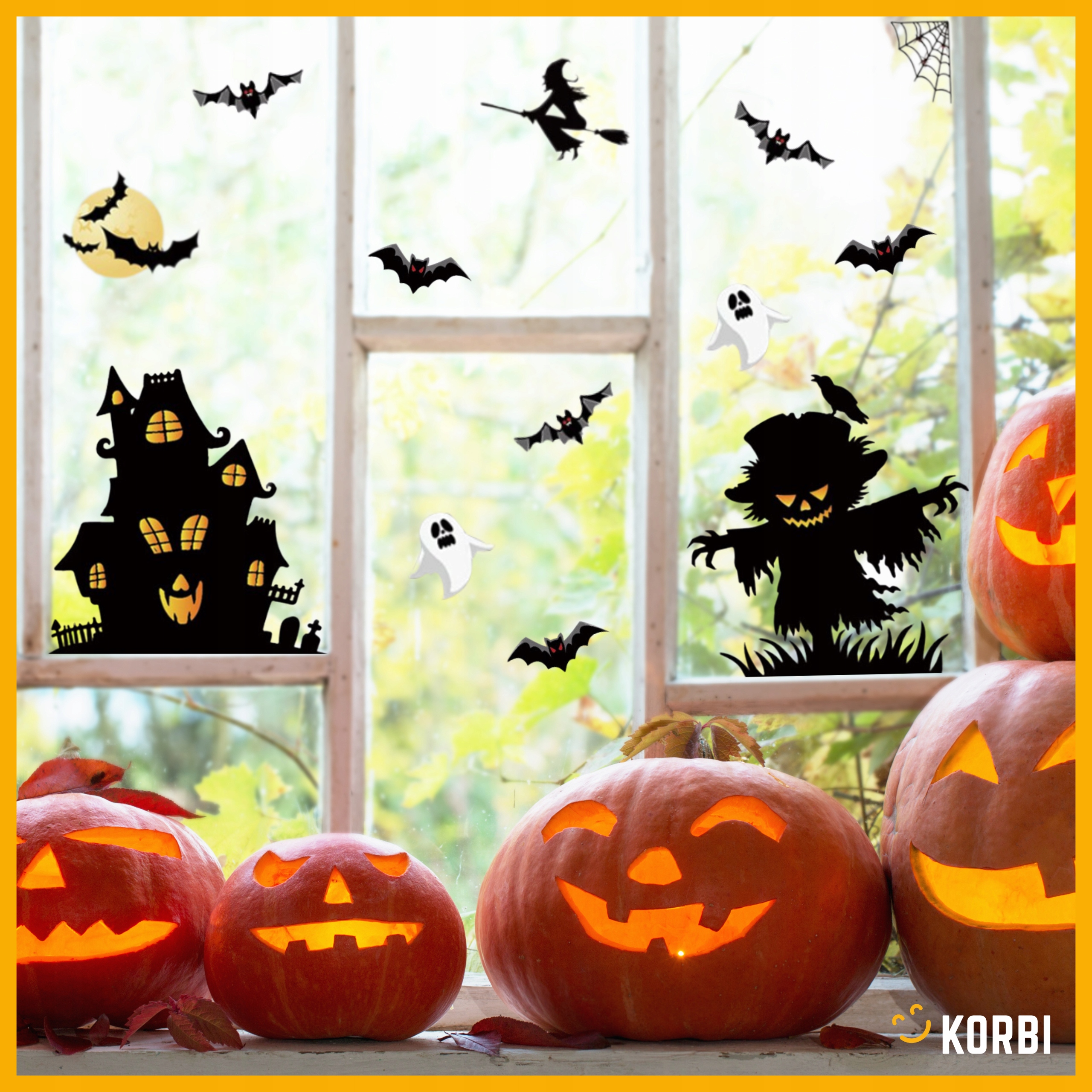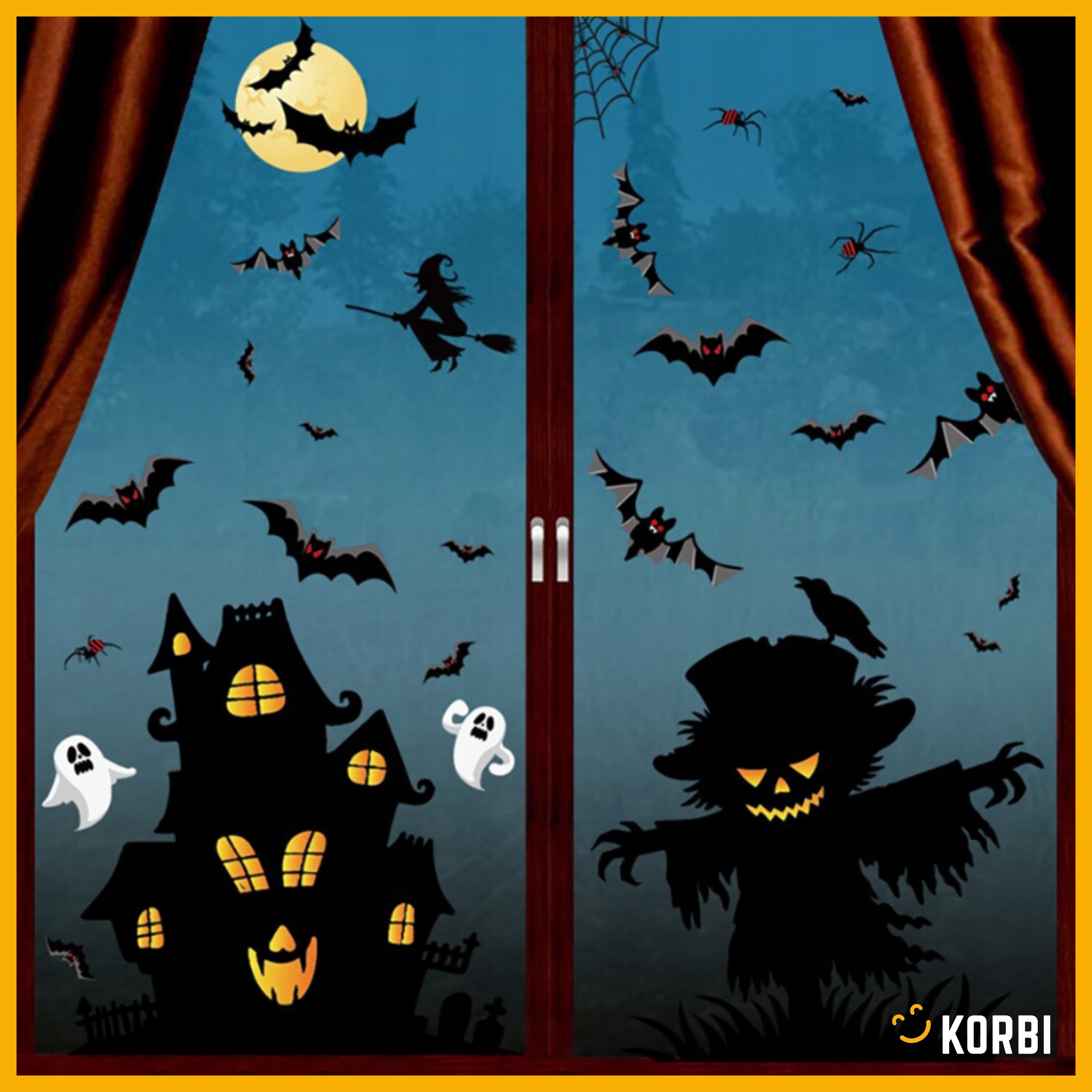 Korbi Strašavno mestno okrasje – nalepke za okna, Halloween dekoracija, komplet