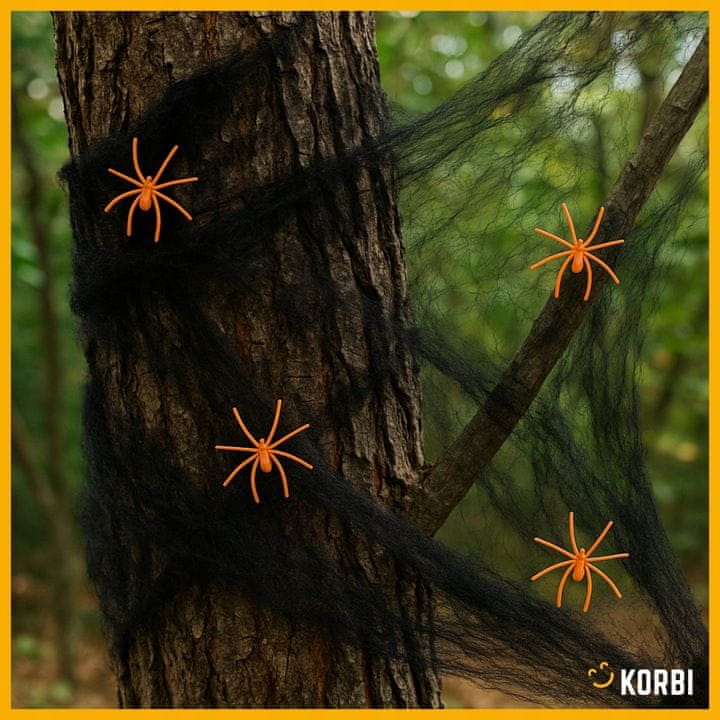Črna pajkova splet z pajki je odlična ne le za Halloween, ampak tudi kot del scenografije za tematske zabave, escape roome, fotografske seje ali šolske predstave.