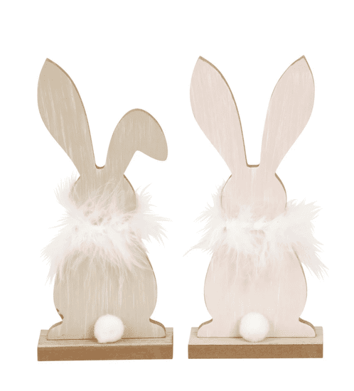 Ljubki dom Stoječi leseni zajček FLUFFY BUNNY 19 cm - več variant