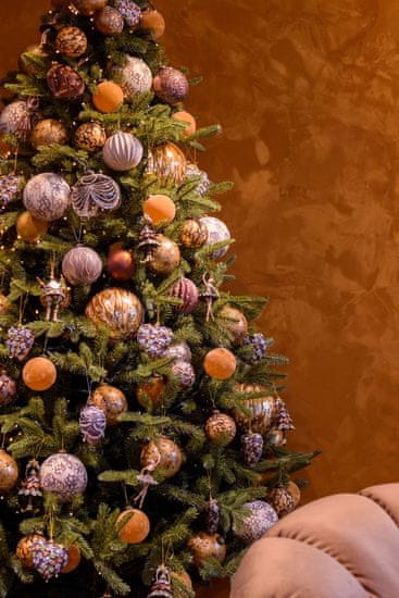 Predstavljeni bombonček je navidezno tradicionalni okrasek za božično drevo. Okrogla s premerom 8 cm je čudovito videti na božičnem drevesu vseh barv. Vendar pa se razlikuje po izvirnem načinu slikanja. Pri izdelavi je bila uporabljena tehnika senčenja, ki v kombinaciji s svetlobo iz lučk božičnega drevesca poskrbi, da se bombon lepo lesketa in odseva svetlobo. Zaradi tega je eleganten in stilsko dovršen okras ne le za božično drevo, temveč tudi za božično obleko ali darilo za ljubitelja oblikovanja. Ta bombonček je del božične kolekcije Marrone in se lepo ujema z vsemi okraski, ki so vključeni vanjo.