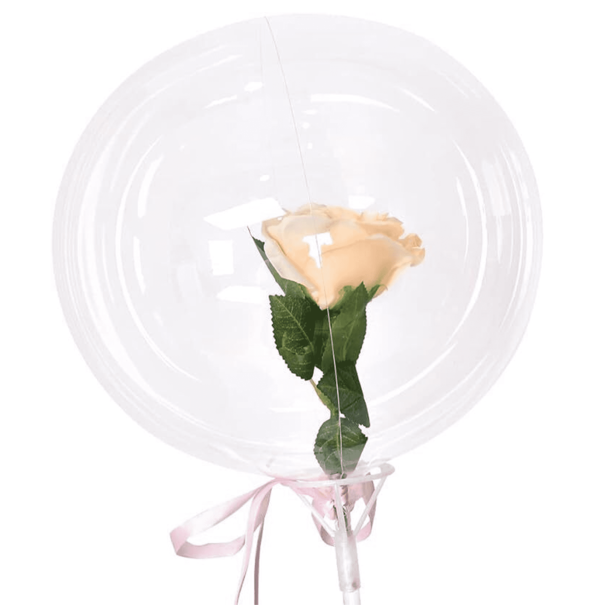 Umetna vrtnica živih barv v balonu s premerom približno 40 cm. V balonu so tudi LED trakovi, ki poudarjajo čudovit videz vrtnice.