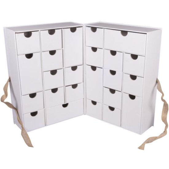 Adventni koledar z razdelki se lahko prepogne na pol in tako prihrani prostor ter ga varno zaveže z dvema trakoma. Papier-mâché – narejen iz FSC-certificiranega lesa, ki izvira iz odgovornega gozdarstva. Papier-mâché – izdelan iz FSC-certificiranega lesa, ki izvira iz odgovornega gozdarstva.