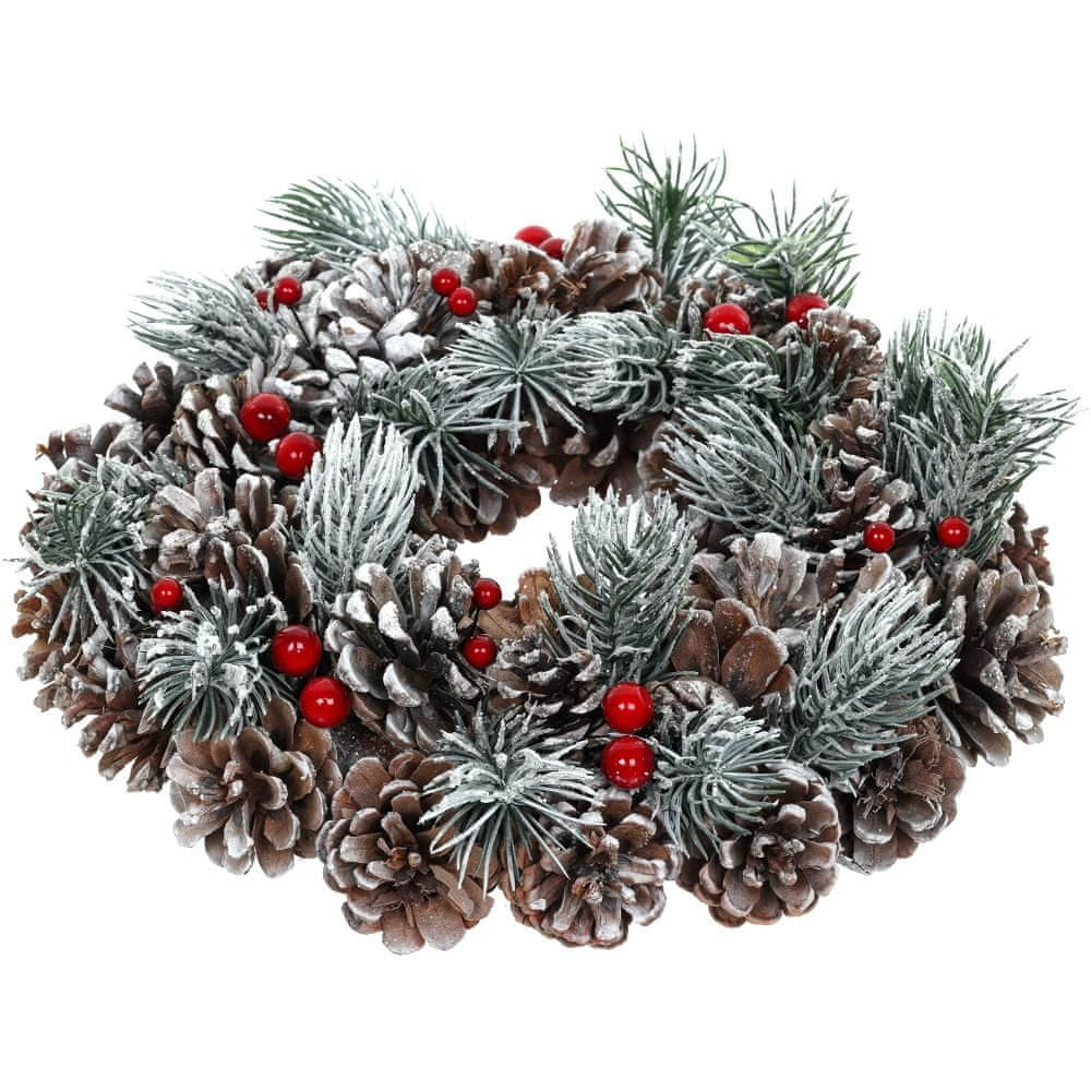 Božični venec Premer 26 cm Z umetnim puhom in borovimi storži