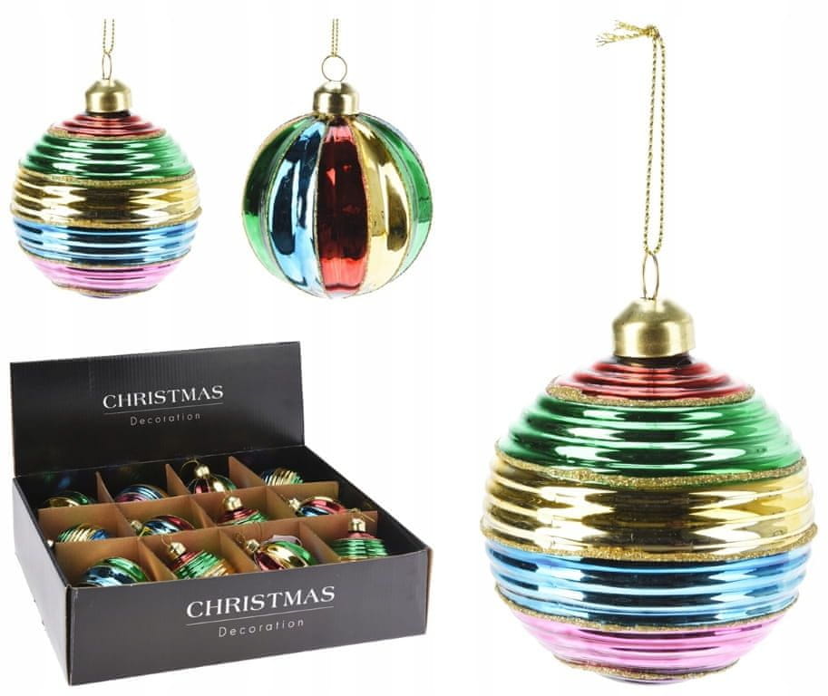 Ta steklena božična krogla velikosti 8 cm s pisanim črtastim vzorcem je edinstvena dekoracija, ki bo poživila vsak praznični interier. Kugla navdušuje s svojimi raznolikimi barvami in sijočim zaključkom, ki čudovito odbija svetlobo ter ustvarja eleganten in živahen učinek.