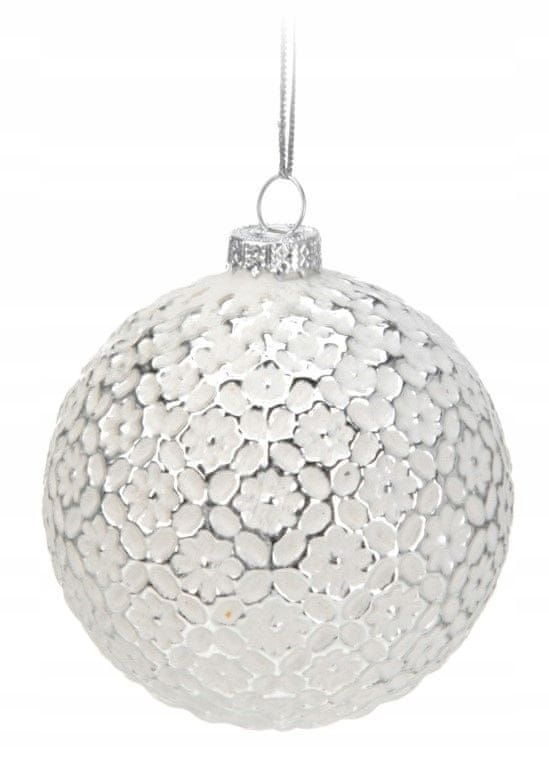 shumee Okrasek za božično drevo, steklen, okrašen, bel, 8 cm, 1 kos.