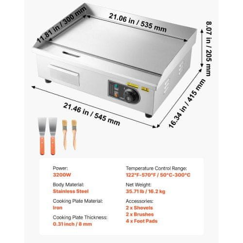 VEVOR Električna plošča za peko 535x300 mm nerjaveče jeklo ravna žar plošča
