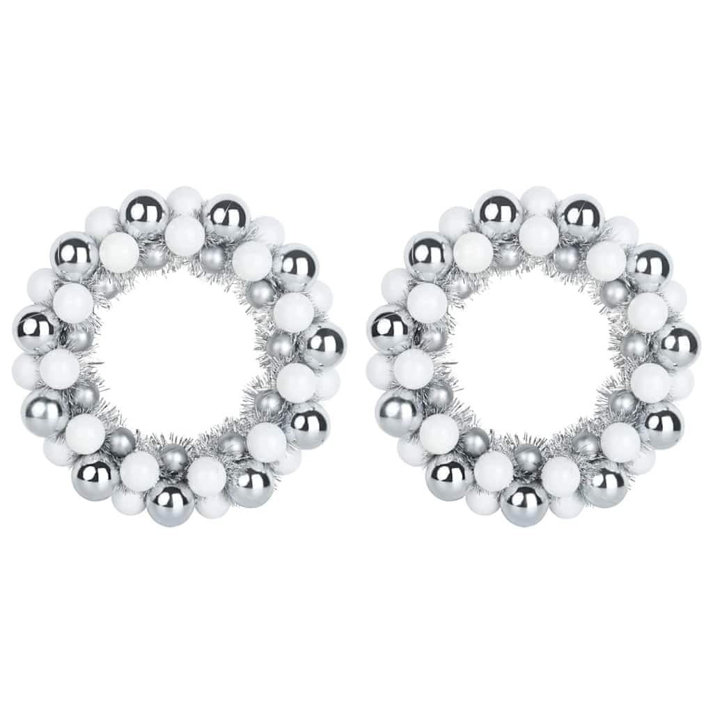 Vidaxl Božični venci z kroglicami 2 pcs Bela in Srebrna 33 x 33 x 7 cm