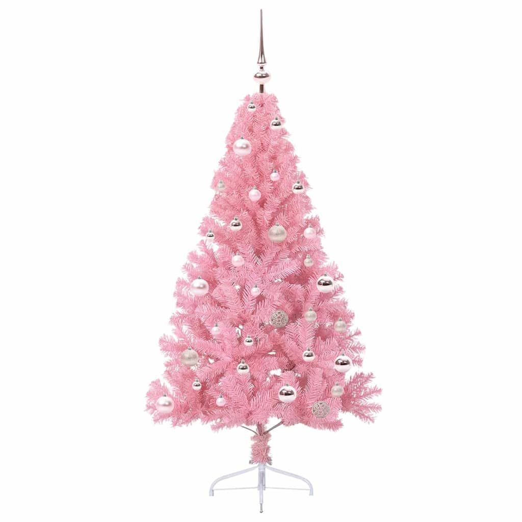 Vidaxl Umjetna preddekorirana božićna jelka Roza 150 cm PVC