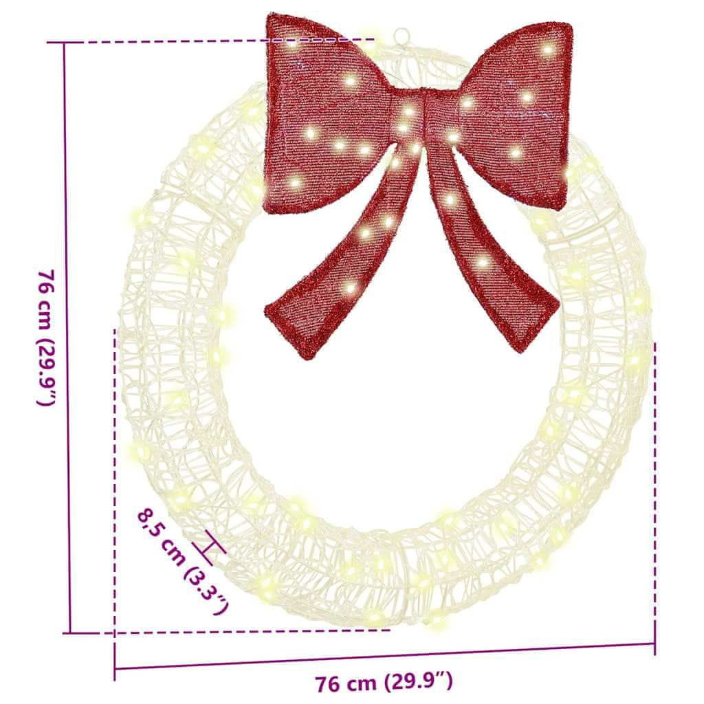 Ta čudovit venec iz vrhunskega akrila izstopa po svojem modernem oblikovanju. Združuje enostavnost in praznični šarm ter je impresiven dodatek k božični dekoraciji, s prefinjenim vozelom na vrhu. Gladko se ujema z različnimi božičnimi temami in ponuja več možnosti za postavitev, kar ga naredi idealnega za vsak dom.