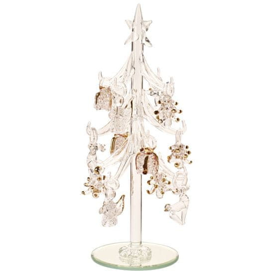 Božični ročno izdelan stekleni okras ZIMSKI KOLAŽ Drevo z zlatimi okraski, višina 20 cm. Celoten opis