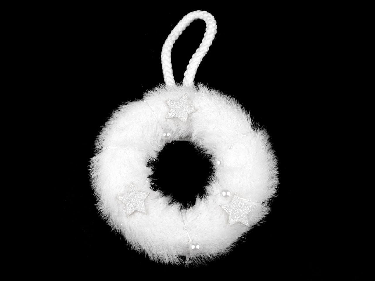 Kožuhovinast venec za obešanje Ø11 cm - bela