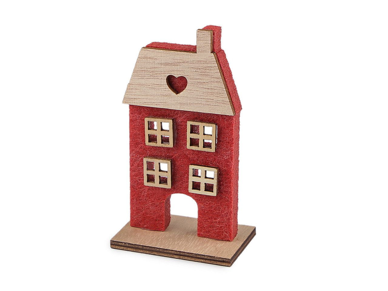 Dekorativno hišico lahko postavite na okensko polico, polico ali ognjišče. Stilsko bo dopolnila različne ureditve. Material je kombinacija lesa in filca. Hišice so enostranske, le različica 2 je dvostranska. Dimenzije št. 1: 7 × 15,5 × 4,5 cm. Dimenzije št. 2: 8 × 15 × 4 cm. Dimenzije št. 3: 7,5 × 12,5 × 4 cm. Dimenzije št. 4: 7,5 × 12,5 × 4 cm. Dimenzije št. 5: 6 × 7,5 × 3,5 cm. Dimenzije št. 6: 5,5 × 10 × 3,5 cm.