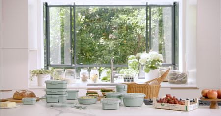 Velik zaboj za kosilo in prigrizke je odličen za shranjevanje glavnih obrokov, hrustljavega peciva, sendvičev, okusnih sladic in drugih dobrot vseh vrst. Zrakotesen in vodotesen pokrov v prozorni izvedbi nato služi za dosledno zaprtje posode, tako da je zanesljivo preprečuje, da bi se živila v njej izsušila, zmočila ali kako drugače razgradila, na primer, če so izpostavljena žuželkam. Vaše kosilo ali večerja bosta tako veliko dlje časa ohranila višjo kakovost. Vgrajeni ventil nato omogoča segrevanje hrane v mikrovalovni pečici in posodo in njen tesnilni pokrov lahko operete v pomivalnem stroju za lažje in hitrejše vzdrževanje. V paketu so vključeni podstavek za stik s suho hrano, 0,8l skodelica za omako in pribor z vilicami, nožem in žlico, tako da boste imeli vse, kar potrebujete za prigrizek, kosilo ali večerjo.