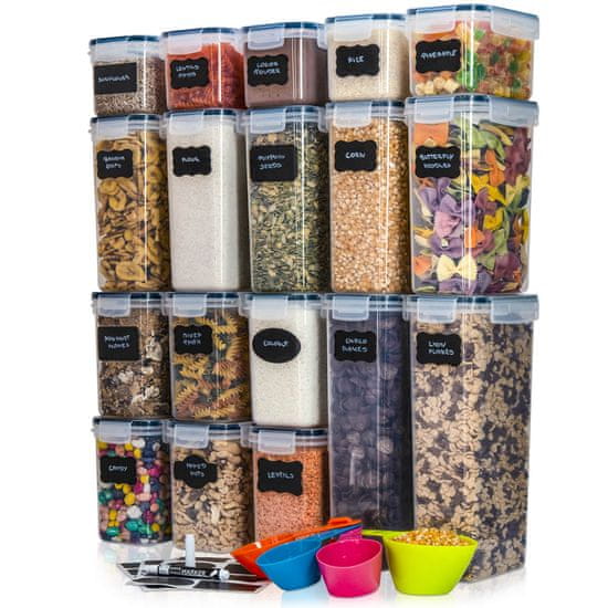 Naš komplet je idealen za shranjevanje prigrizkov, kot so sladkarije, granola, oreščki in piškoti, osnovnih živil, kot je moka, in živil za zajtrk, kot je kava. Shranjevanje v teh prozornih posodah je enostavno, živila pa bodo dobro organizirana in vedno pri roki. Nikoli več se vam ne bo zgodilo, da bi pozabili, kam ste nekaj shranili!