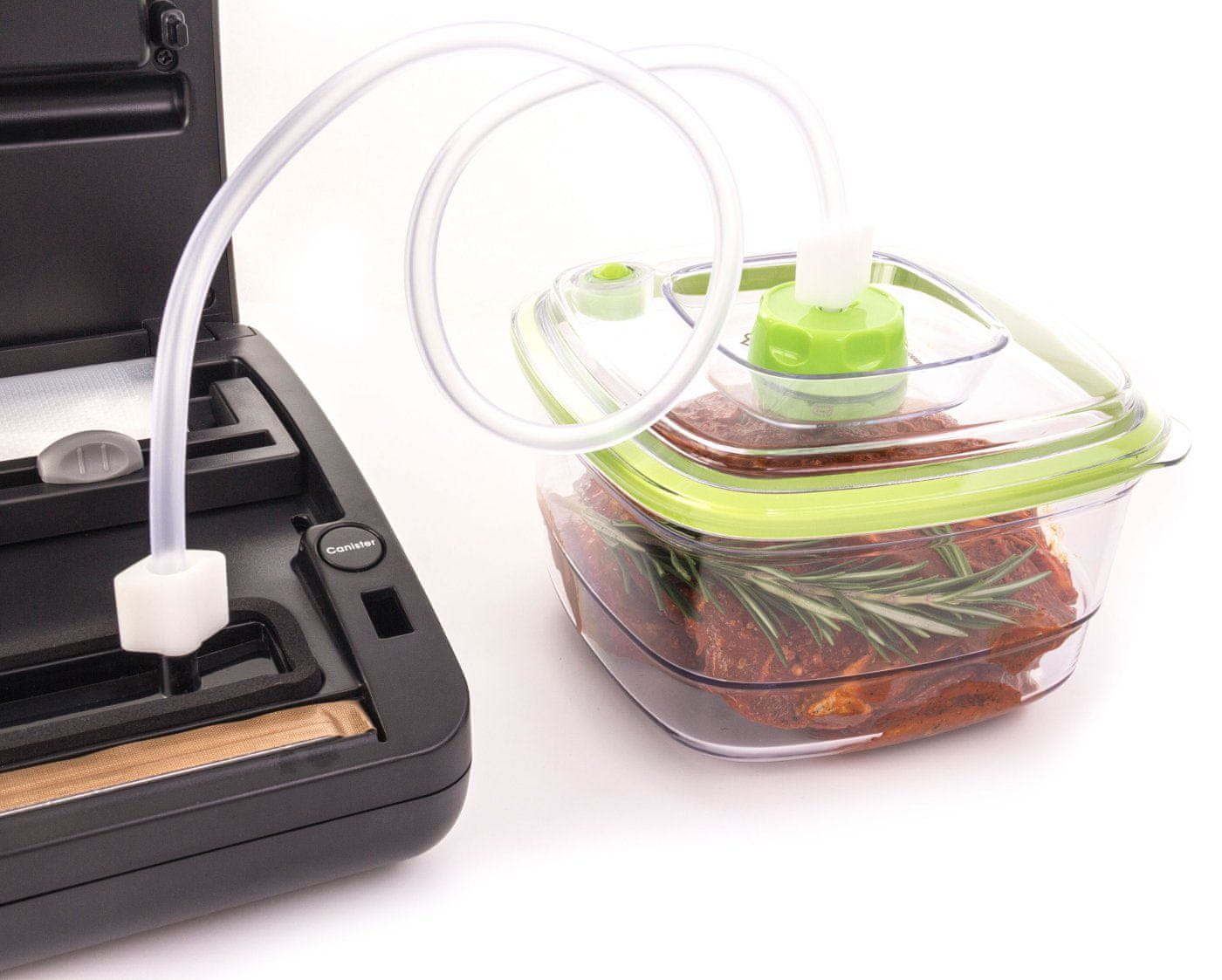 Dejavnost vakuuma povzroči tlak na marinirano meso, ki sprosti pore. Tako marinada prodre globlje pod površino, meso ali druge marinirane sestavine pa dobijo boljši in izrazitejši okus in aromo. Poleg tega se čas, potreben za mariniranje, v vakuumu bistveno skrajša. Meso, marinirano v vakuumu, je okusnejše, sočnejše in mehkejše. Če uporabljate vakuum G21 Nefrit s posebno funkcijo mariniranja (z večkratnim spreminjanjem tlaka omogoča še boljše delovanje mešanice za mariniranje), boste že ob prvem poskusu opazili in cenili pomembno razliko.