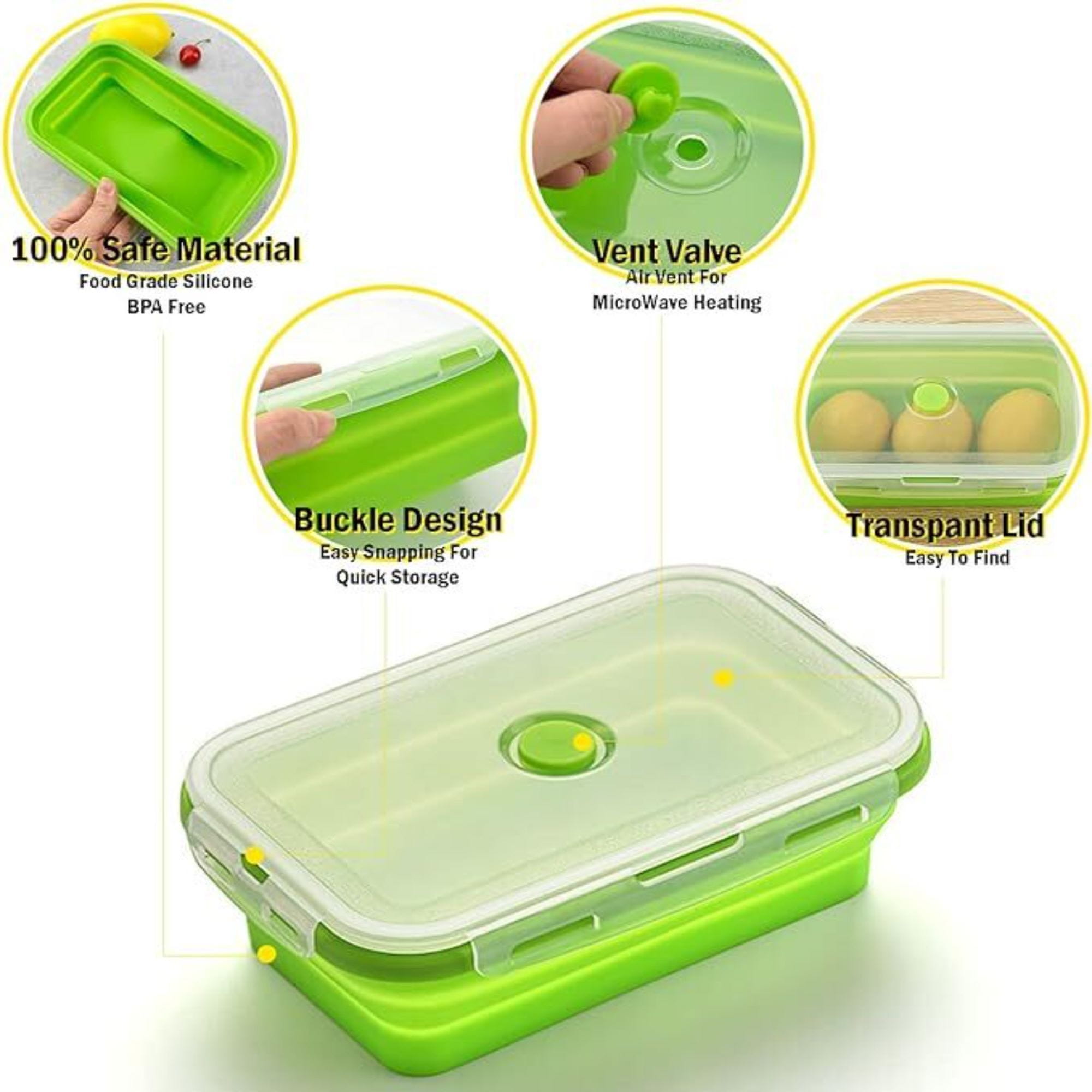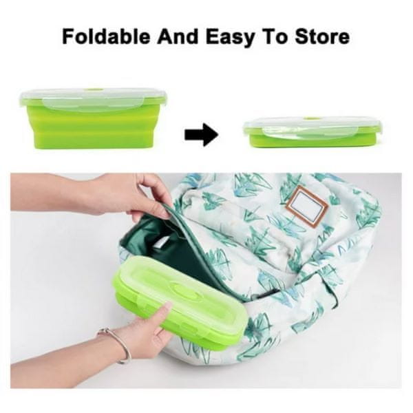 HOME & MARKER® Komplet silikonskih zložljivih posod, Posode za shranjevanje hrane, Odporna na mraz in vročino (Zelena, 4 kosi) | POPLATE