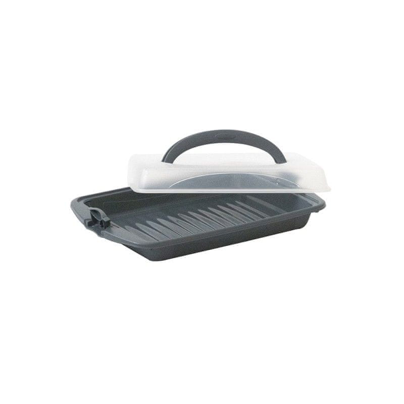 • praktična prenosna škatla za hrano s prozornim pokrovom- veliki zložljivi ročaji za udobno prenašanje- varno zapiranje pokrova s stranskimi sponkami- idealna za kakršno koli hrano ali surovine, za vrt, zabavo, potovanje, obisk itd.- skupne mere: 45 × 30 × 9 cm- mere samo notranjega dela: 35,5 × 26 cm- barva: siva / prozorna- znamka: KELA