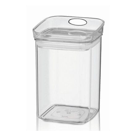 • material: plastika – zrakotesno zapiranje zagotavlja dolgotrajno svežino – možnost zlaganja – idealno za shranjevanje v kuhinji, na policah ali v hladilniku – mere: 10,5 × 10,5 cm – višina: 15,5 cm – prostornina: 0,8 l – 8 različnih modelov in velikosti v seriji