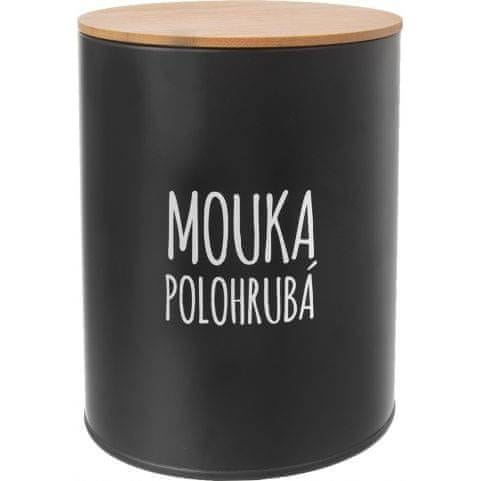 Oblikovana pločevinasta škatla z mat črno površino za shranjevanje polgrobne pšenične moke, primerna na primer za .