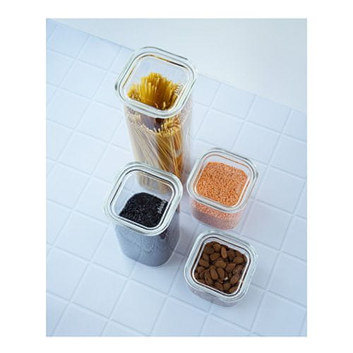 Dóza , PKV-046, skleněná, čtverec, na jídlo, skleněné víko, 2,2 l, 11 × 30 × 11 cm Celoten opis