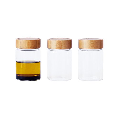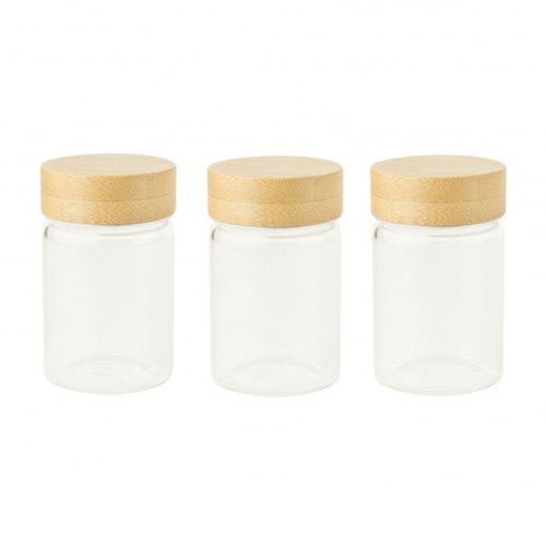 Dózy , PKV-030, set 3 ks, skleněné, kulaté, 75 ml, bambusové víko s uzávěrem, 4,7 × 4,7 × 7,5 cm Celoten opis