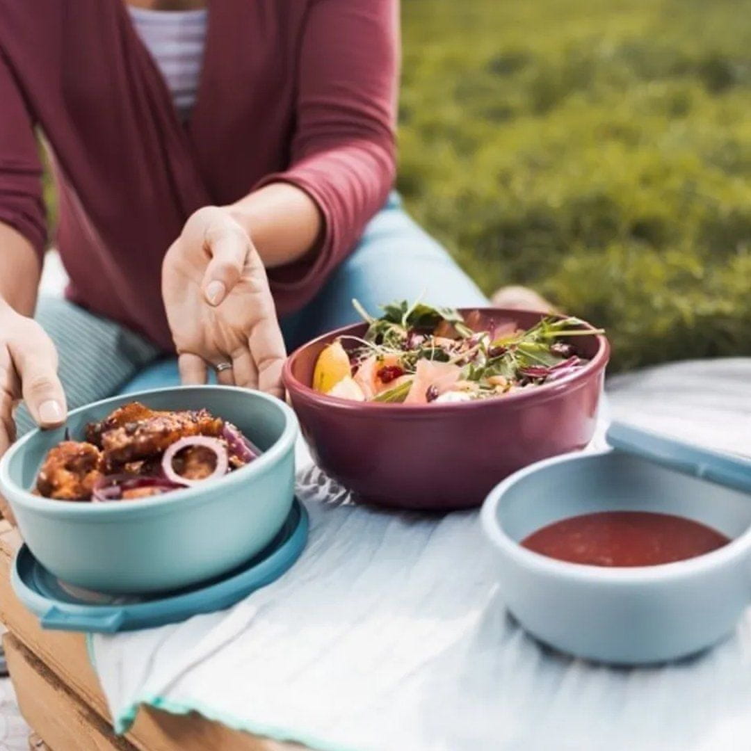 MEPAL CIRQULA (3 L), multifunkcionalna skleda s pokrovom v nordijsko zeleni barvi, je popolna posoda za shranjevanje svežih živil ali že pripravljene hrane. Ta velikost je idealna za shranjevanje večjih porcij obrokov in solat. Linija »Cirqula« nizozemske blagovne znamke Mepal je zasnovana za popoln »krog uporabe« (ang. circle of use) – od shranjevanja živil v zmrzovalniku in hladilniku, segrevanja hrane v mikrovalovni pečici (brez pokrova), do serviranja neposredno na mizi. Cirqula je narejena iz neuničljivega materiala (brez BPA), prosojno okence na njenem pokrovu pa omogoča vpogled v shranjeno vsebino. Ravno ta inovativen, mehak pokrov omogoča zrakotesno in nepropustno zapiranje brez polivanja. Hrana bo dlje časa ohranjala svežino, skledico pa lahko vzamete tudi s seboj na pot. Mepal Cirqula posodice v različnih velikostih in oblikah so praktične in enostavne za shranjevanje, saj jih lahko postavite eno navrh druge, ko so polne, ali zložite skupaj, ko so prazne. Čiščenje posodic je enostavno, primerne so tudi za pomivalni stroj.