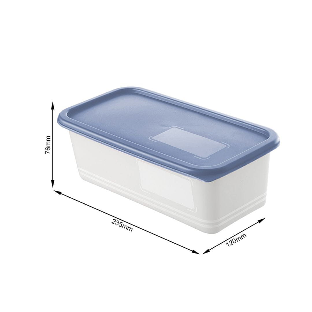 Priročen Rotho set za shranjevanje Domino vsebuje 3 posode s prostornino 1,2 l, ki se zapirajo z zrakotesnim modrim pokrovom, ki izolira vonjave in poskrbi za ohranjanje okusa in daljšo obstojnost živil. Primeren je za shranjevanje in zamrzovanje juh, obrokov, hrane… Na sredini pokrova je prostor za pisanje. Posode so izdelane iz trpežne umetne mase polietilena (PE), brez BPA, ki so primerne za zamrzovanje do –40° C in pomivanje v pomivalnem stroju. Izdelano v Švici z visokimi standardi kakovosti in dizajna.