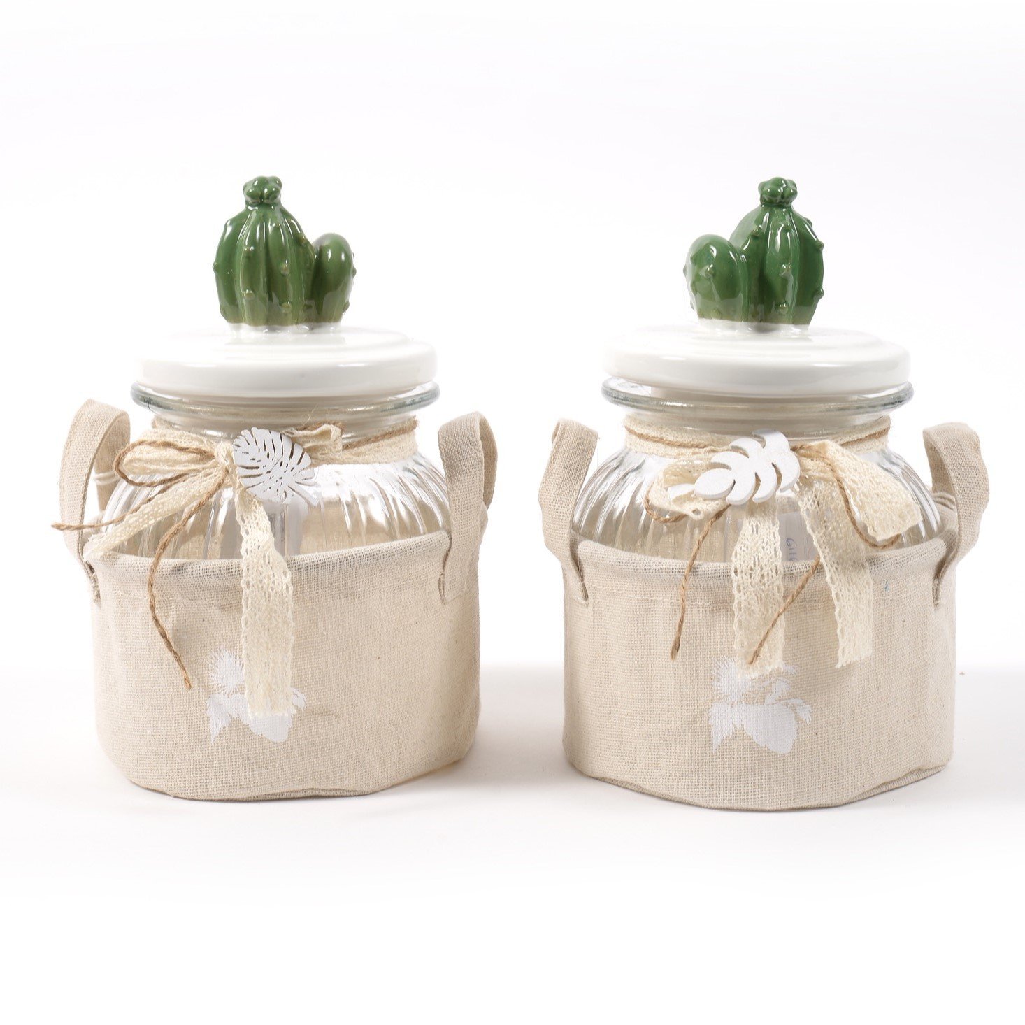 Kaktus doza za piškote steklena pokrov porcelan 16xh23cm v košarici iz blaga / sortirani vzorci